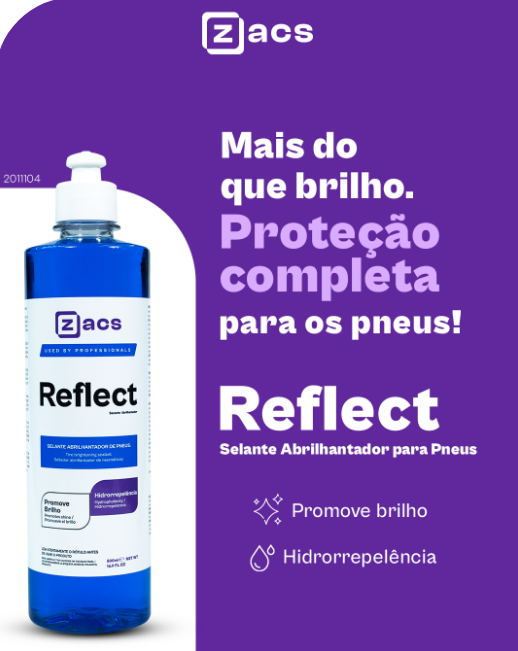 Reflect é um selante abrilhantador de pneus à base de polímeros sintéticos de última geração, desenvolvido para proporcionar brilho, hidrorrepelência e proteção por até 45 dias nos pneus de automóveis.