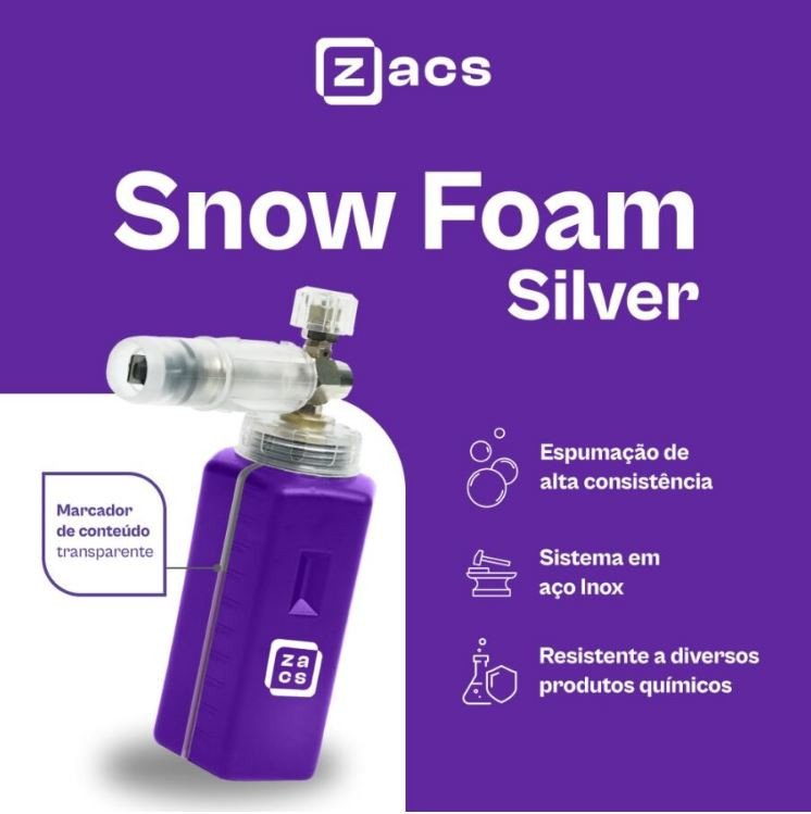 A SNOW FOAM SILVER é um produto exclusivo ZACS desenvolvido para gerar espuma de alta consistência, elevando a performance e segurança nas lavagens automotivas.