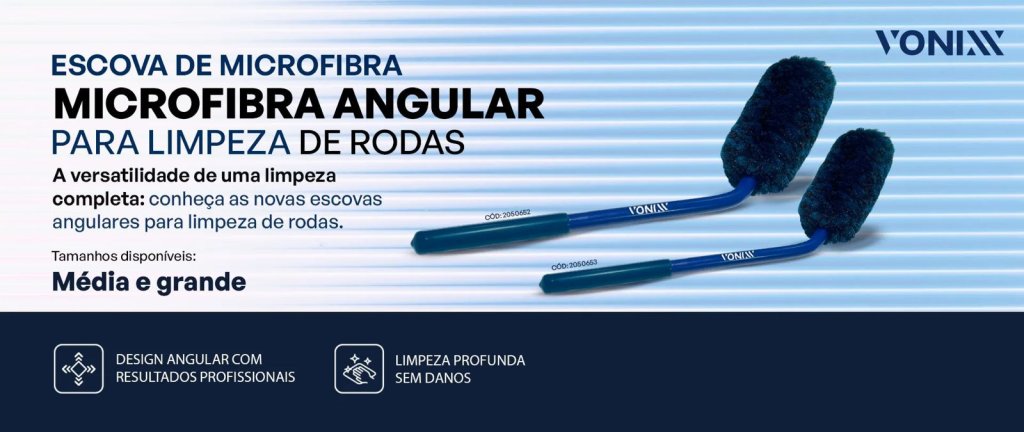 A Escova de Microfibra Angular Grande da Vonixx é ideal para quem busca praticidade e agilidade na limpeza das rodas. Com tamanho ampliado, ela cobre áreas maiores com eficiência, enquanto seu design angular permite alcançar pontos difíceis sem esforço. As cerdas de microfibra limpam suavemente, sem causar danos à superfície. Possui cabo anatômico que garante firmeza e conforto durante o uso.